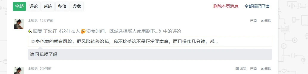 本身他卖的就有风险,把风险转移给我,我不接受这不是正常买卖嘛,而且操作几分钟,都是玩论坛的人,补偿10块辛苦费,还在论坛挂我,还说我人有问题,666