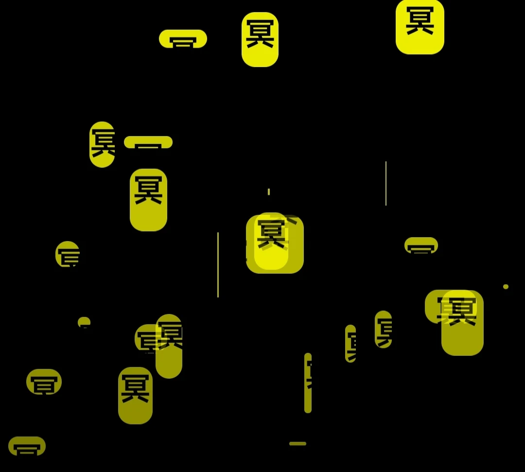 不断下落的“冥”字幕。该特效绝对是小归客原创。AI写的,日常调教。