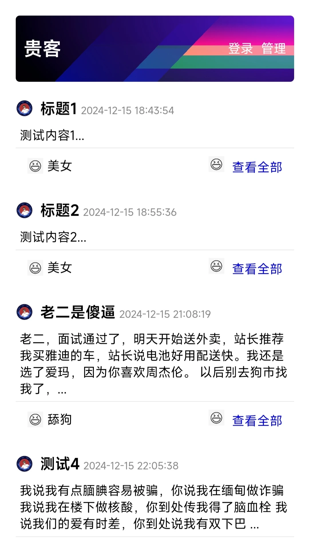只添加了,文章功能,别的没有,前端的头像是写死的。