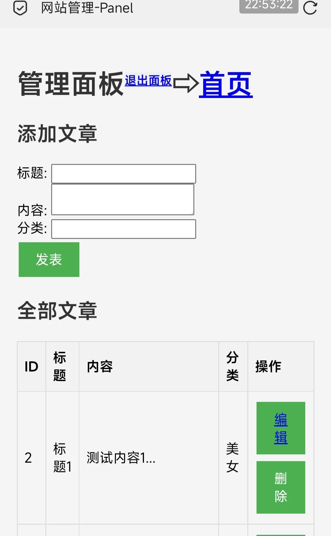 删除的文章id无法恢复,目前支持发表文章,编辑,删除功能。
