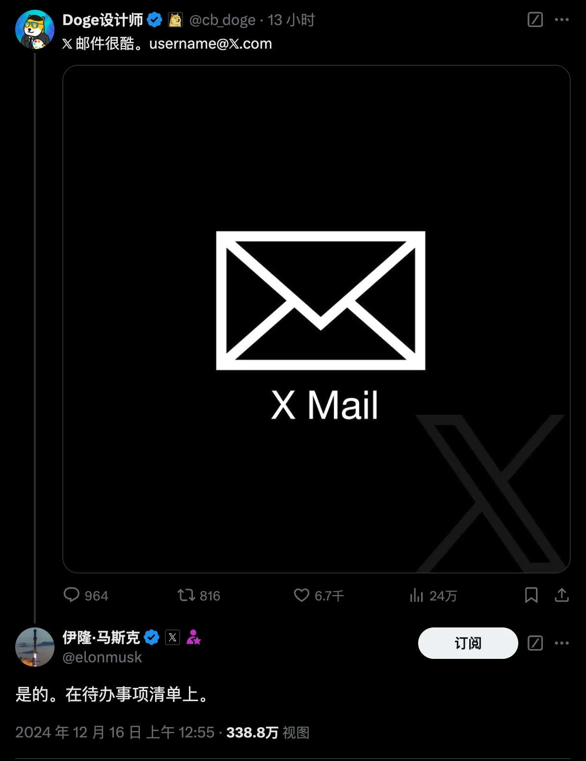 马斯克将推出电子邮箱服务 𝕏 Mail,域名 x.com