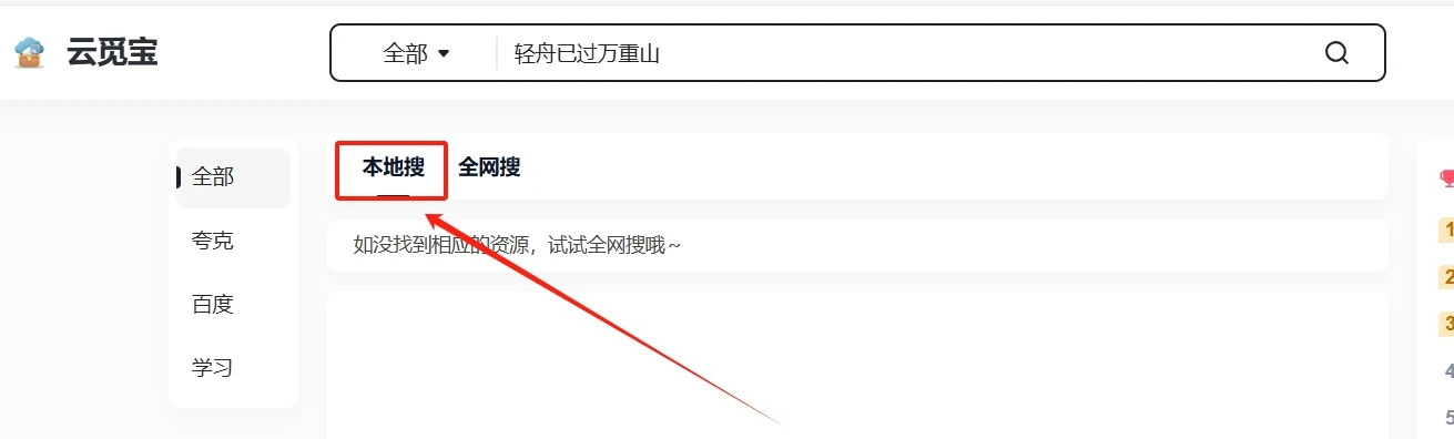 如果本地搜没有搜索到资源,可试试全网搜,两个都没有,等待系统收录即刻