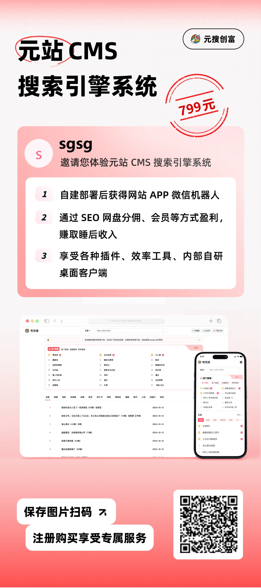 基于元站可快速构建自己的内容管理系统,目前盈利模式是基于内容做 SEO,通过底层的网盘分佣、会员以及流量广告实现盈利。