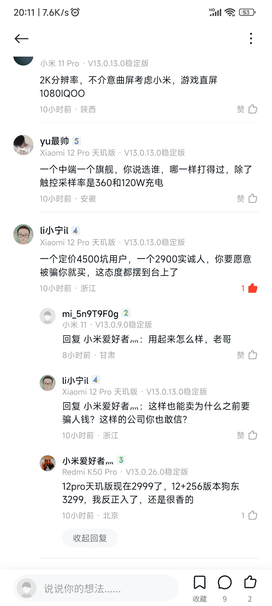 作为一款小米数字旗舰,给种小bug我都不说什么,结果竟然3个月跳水1千2,还支持国产芯片,我呸,活生生的大冤种,雷布斯就是这样对待米粉。