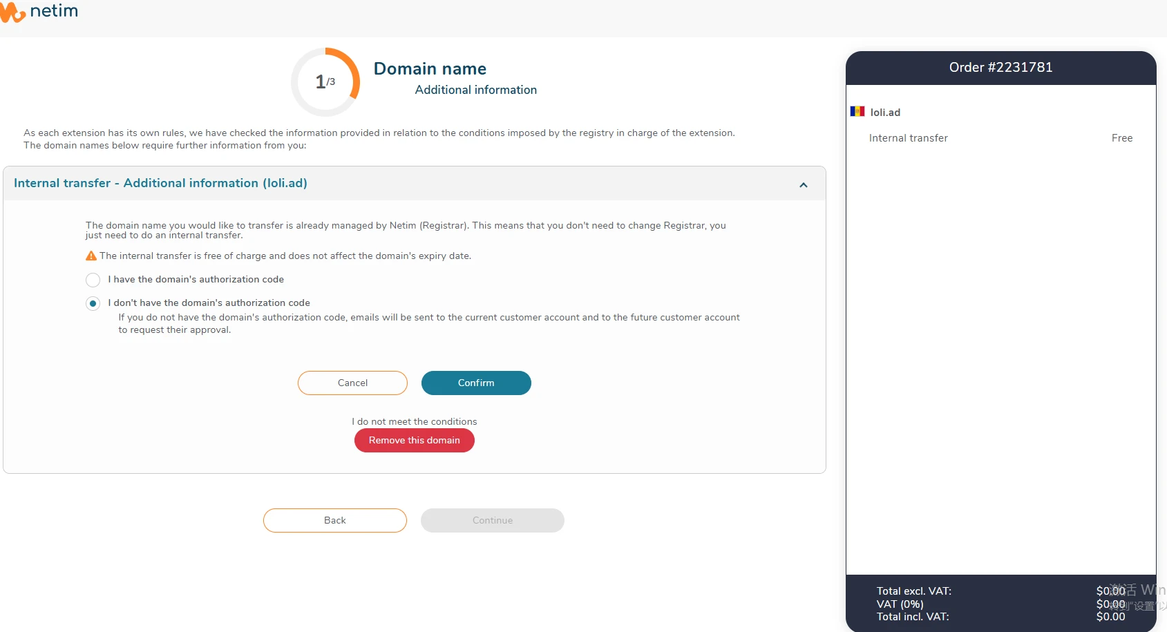 输入Deus.ml ,无脑下一步,选择我没有转移码,确定提交即可,转移 0 元