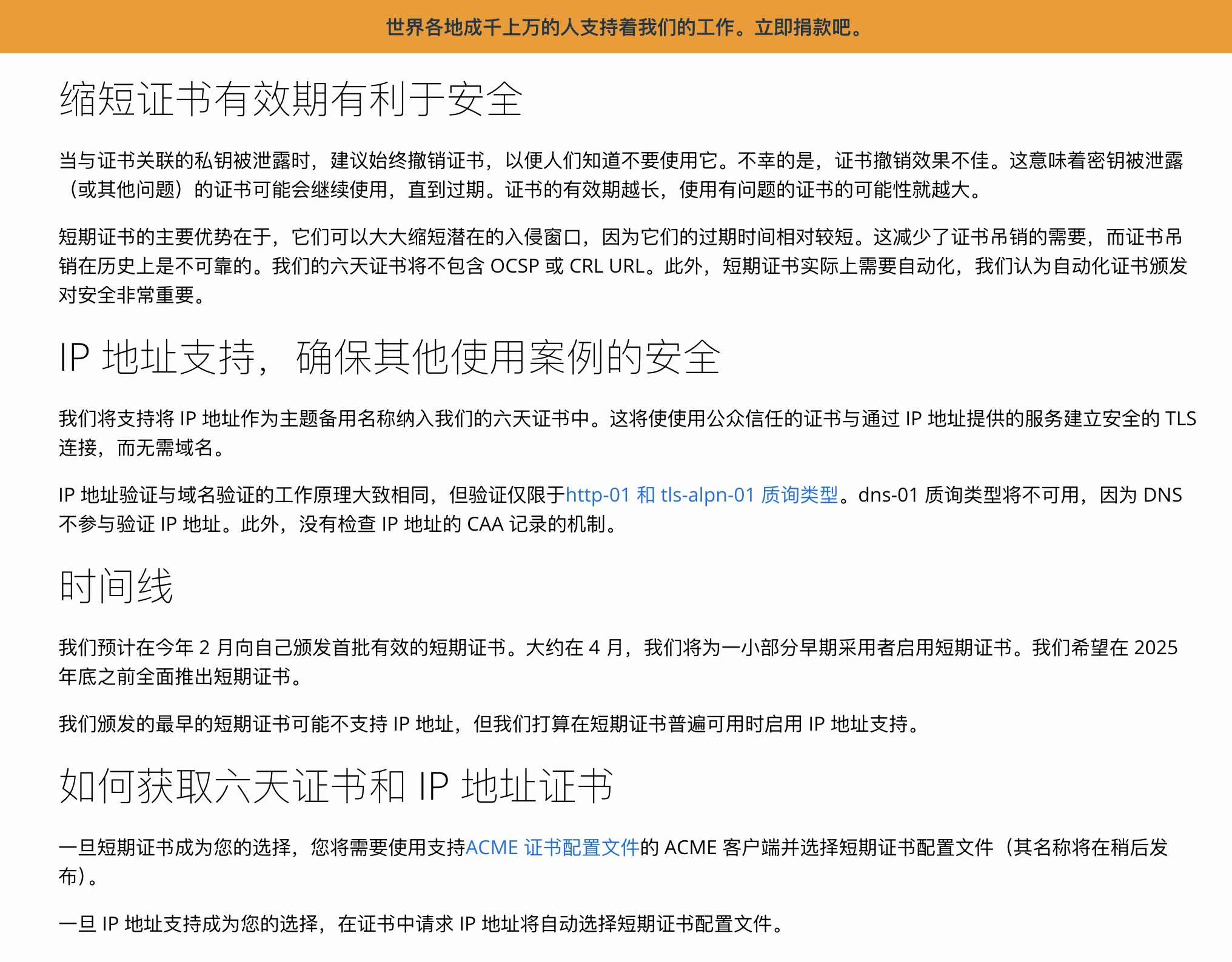 Let’s Encrypt 即将支持有效期为6天的证书和IP地址证书