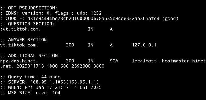 网传台湾地区运营商中华电信 DNS ban 掉了 Tiktok 和小红书