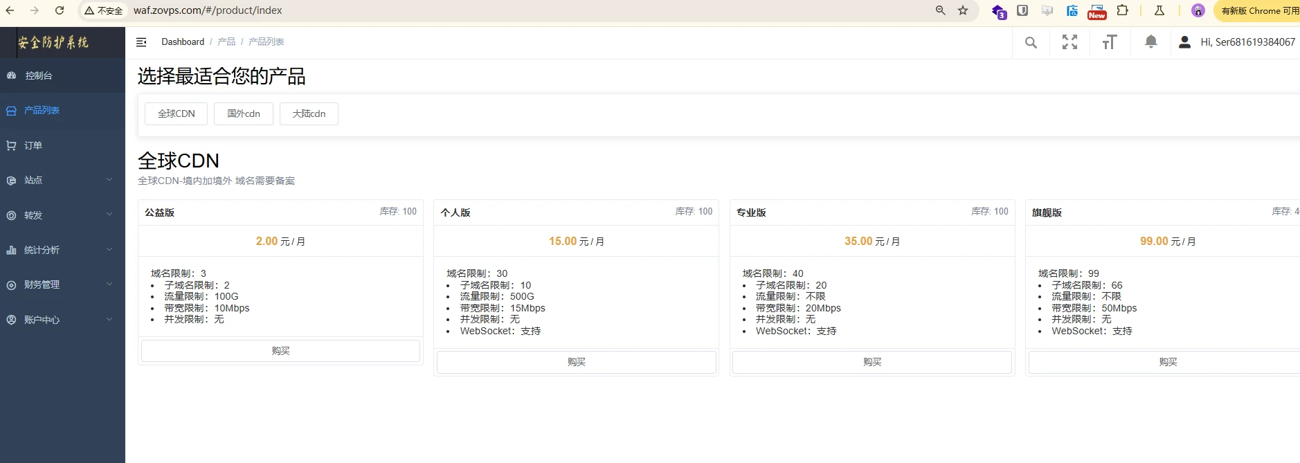 新上架全球CDN,自动过白,接入就可以使用,目前节点内含大陆华南,华北,华中,西南,华东,东北等多个节点,打造卓越的防护力,将在这个月10号节点全部上线完成,有要的可以提前入手,低至2元/月,小白站长也可以接入了。https://www.zovps.com/cart?fid=7&gid=247