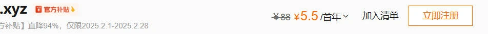 阿里云搞活动,.xyz后缀域名首年只要5块5,分享给坛友,有需要可以冲