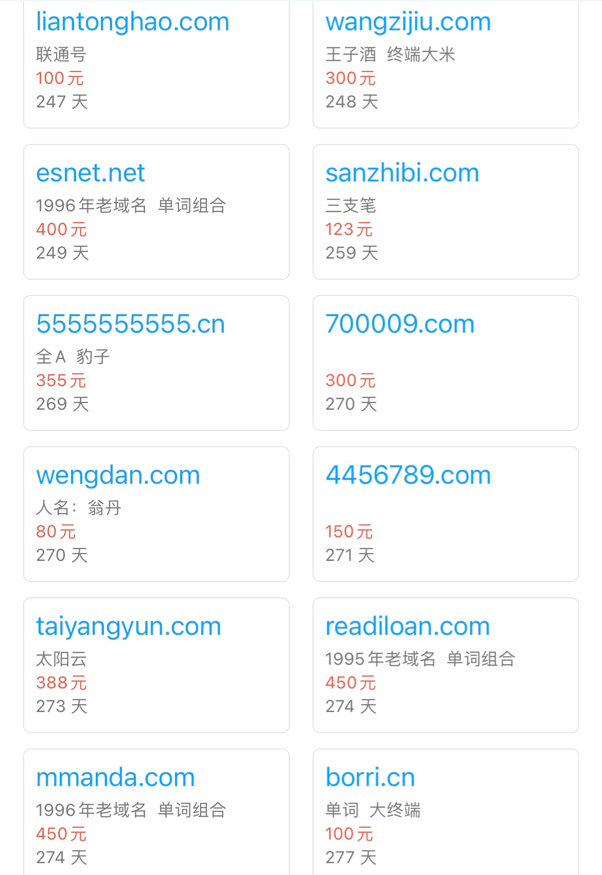 50个域名卖卖
