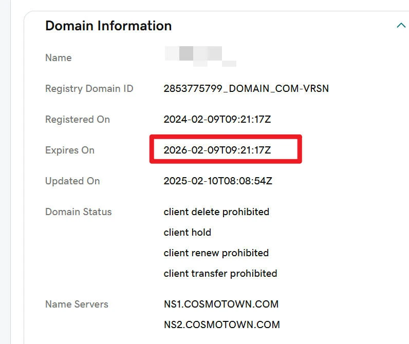 我去年在cosmotown煮了一个米,现在不想要了,准备让它自动过期,今天看了一眼whois发现居然续费了??但是我没花钱,而且只有whois上面是显示2026过期,cosmotown官网上面显示还是已经过期需要赎回,这是怎么回事,有没有大佬指点指点