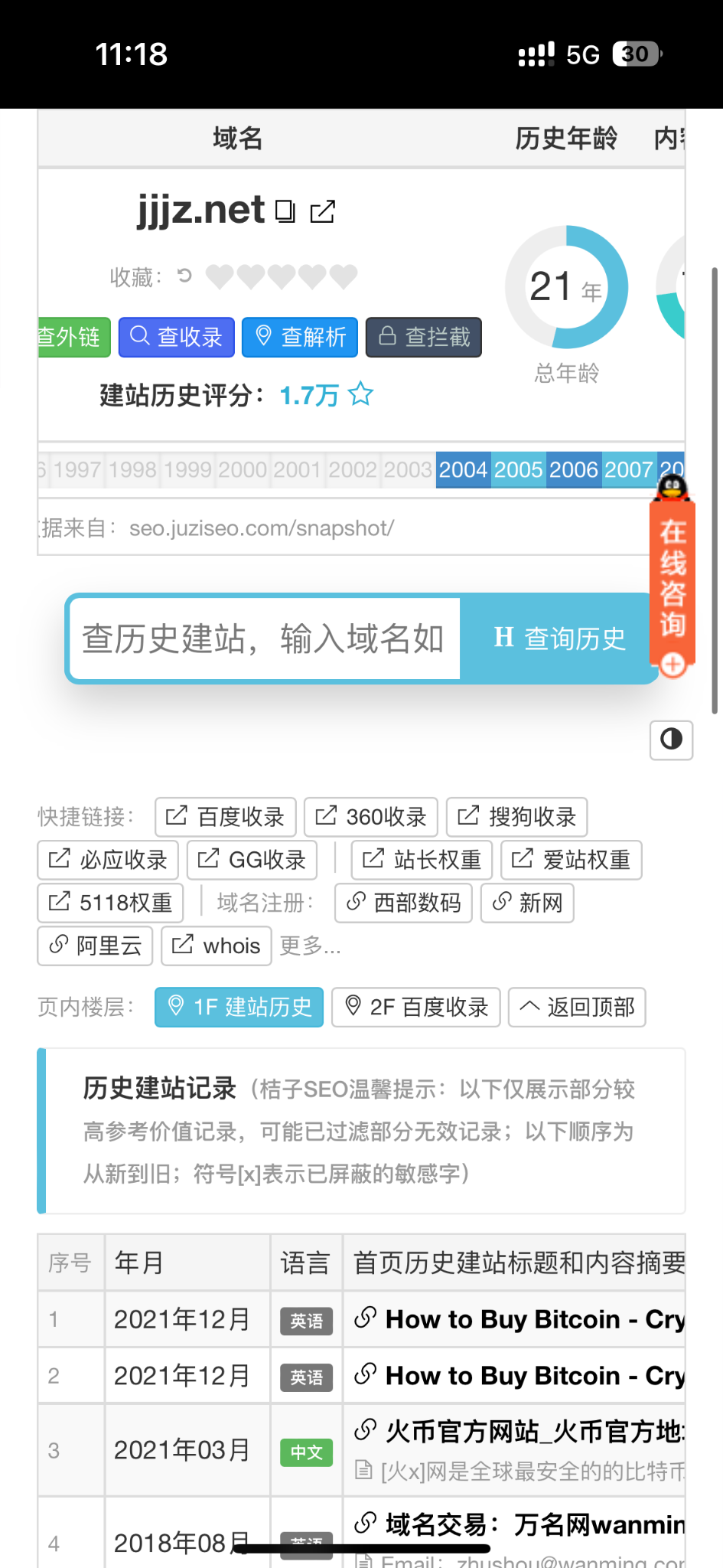 【已被秒】JJJZ.net 橘子评分1.7w!历史建站21年,连续建站14年!