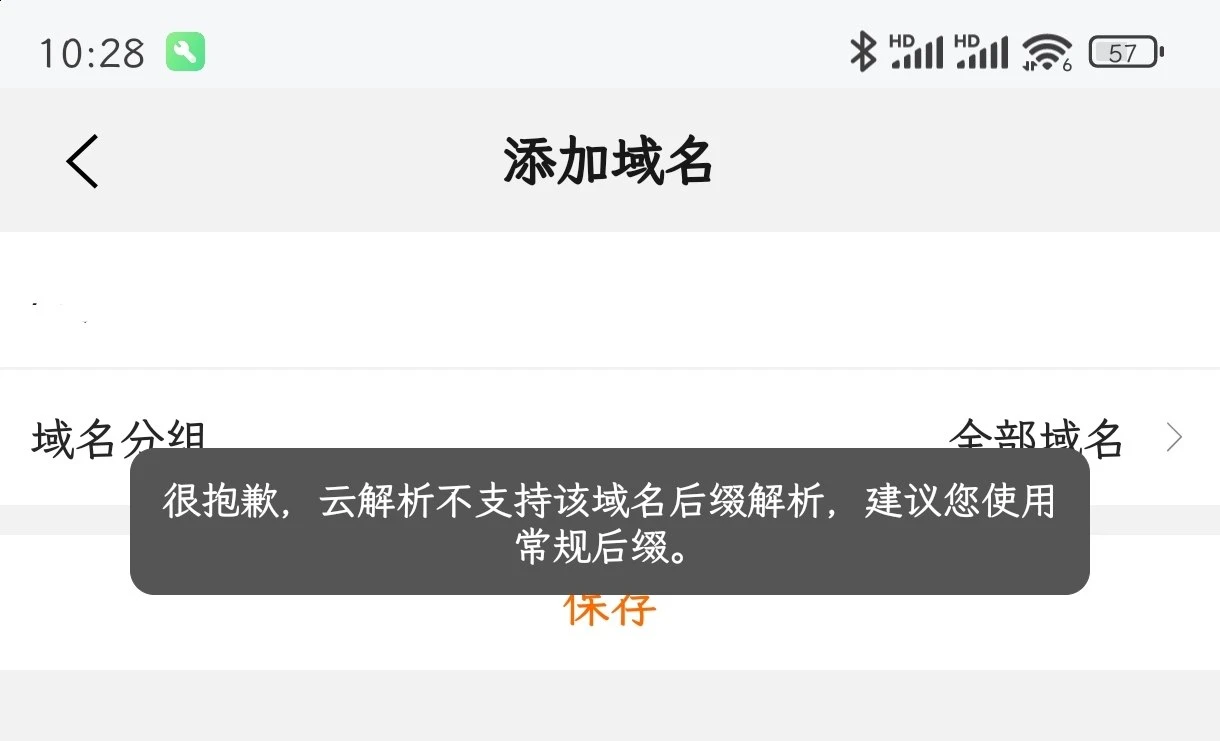 呃,第一次看到阿里云不支持这个后缀解析,还得提工单