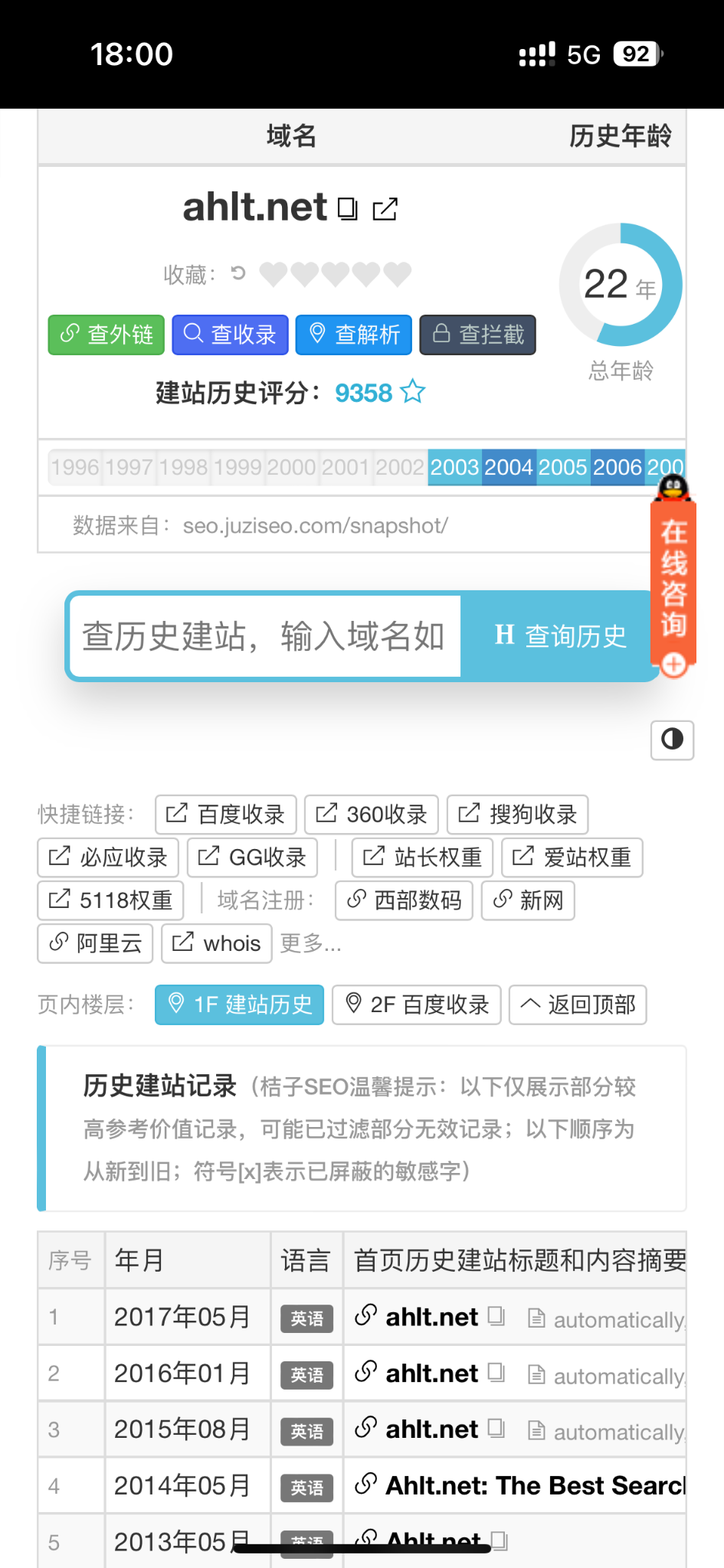 有 20 多年建站历史!干净无污染,权重高,做网站易收录!