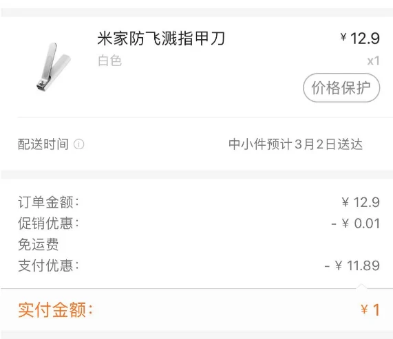 小米商城 小米指甲刀 原价12.9 分期立减11.9 只需1元