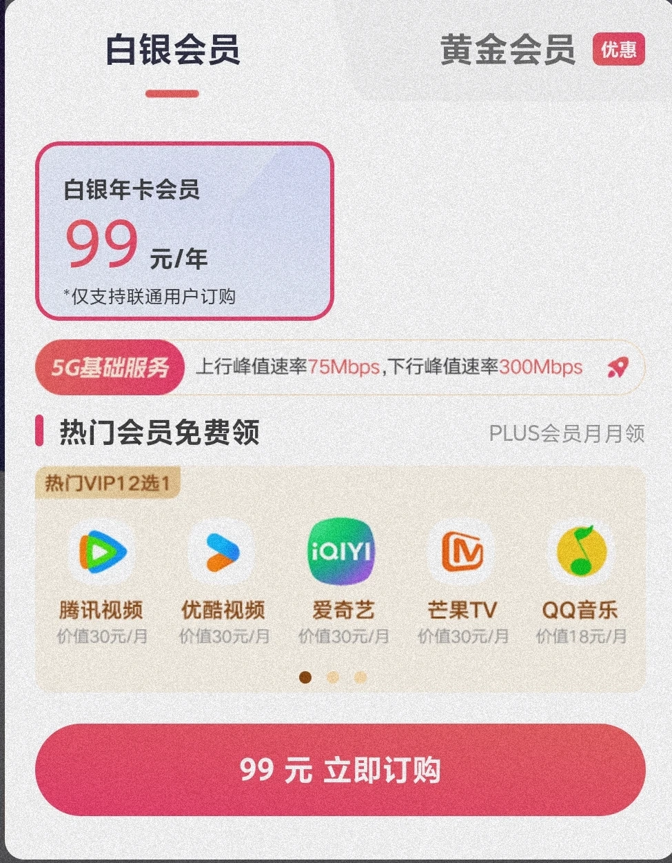 联通营业厅开 99 一年的 plus 会员可以领取腾讯优酷爱奇艺等任选其一,还有更优惠的吗?