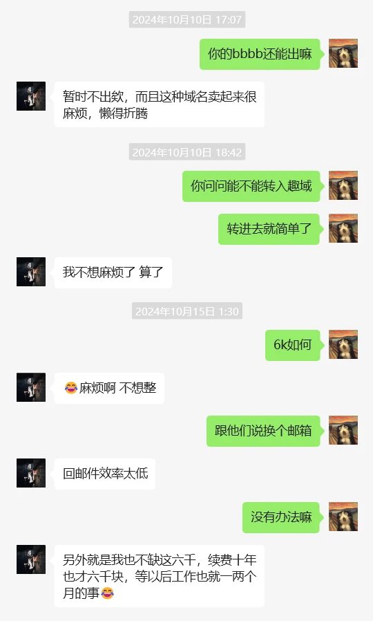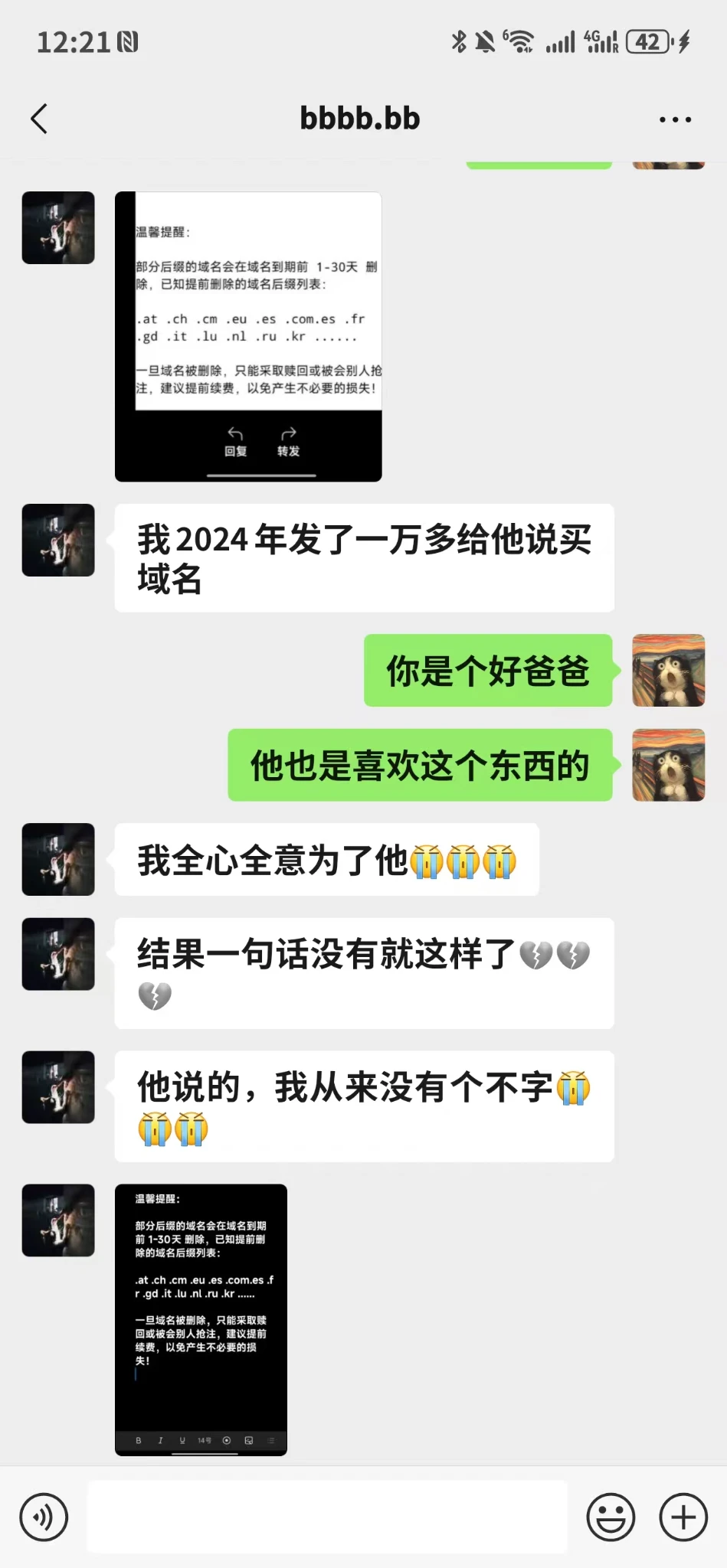 如果大家知道什么情况(已在之前出售或者我没收集到的)请联系我删除域名或者补充,这些域名出售的所有收益也会全额给他父亲,如果真的有喜欢他留下的这些域名可以联系我帮忙转移,最后希望米友们少熬夜,注意身体,珍爱生命,也默哀韩鑫的离世