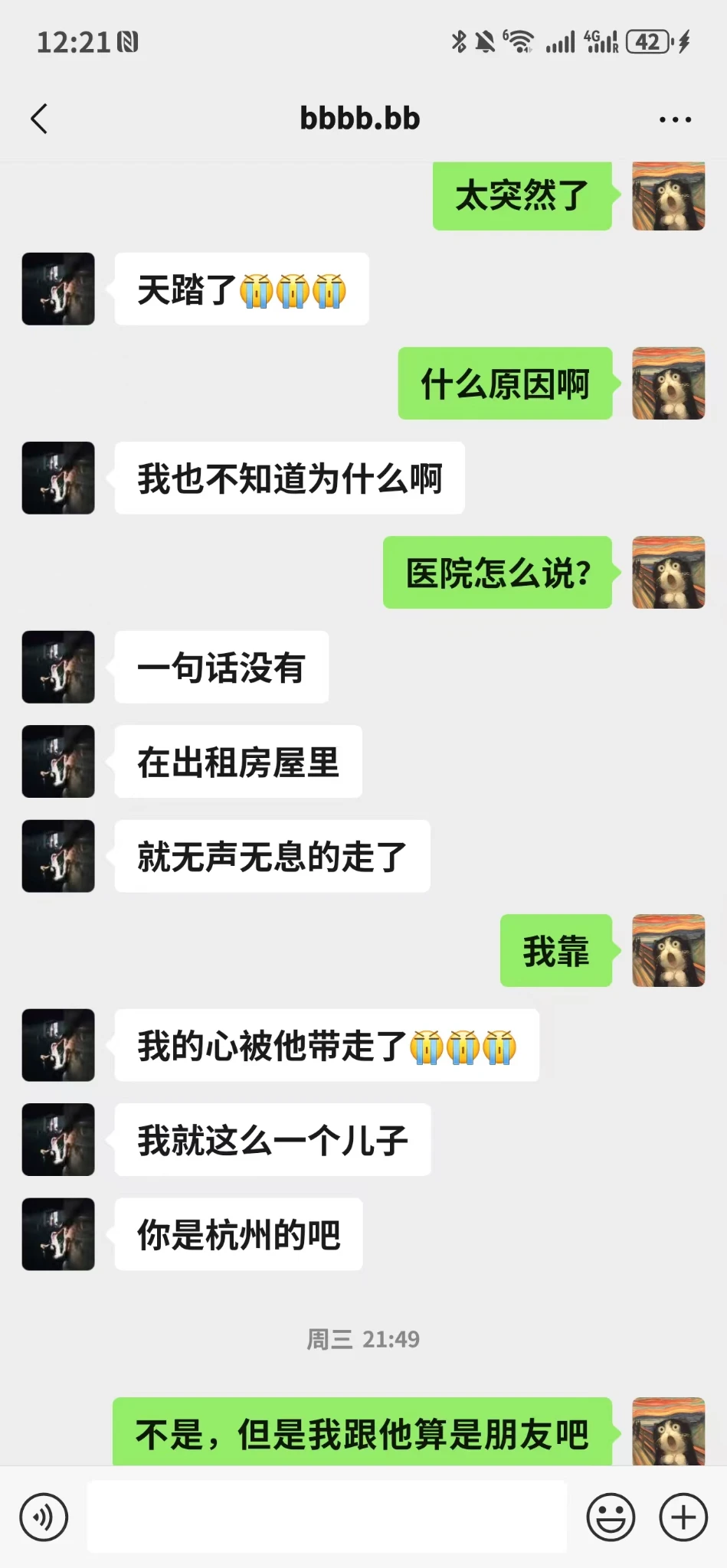 直到今年1,2月份的时候,他很久没回我的消息了,这周三的时候,我收到了他爸爸的消息