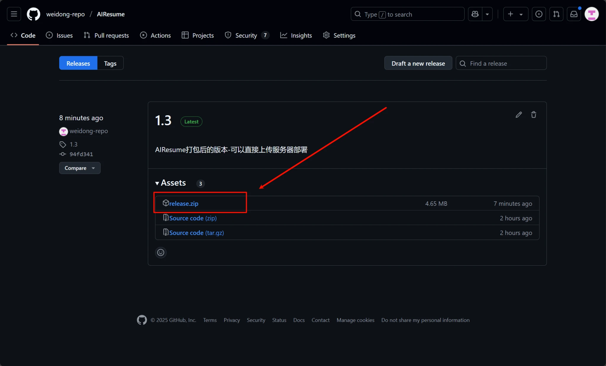 部署教程正式开始(针对面板用户):1. 访问链接,下载最新的 release.zip 压缩包https://github.com/weidong-repo/AIResume/releases