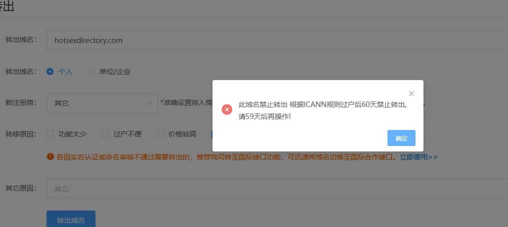 转入到他们平台的域名,不能及时转出,还需要等待60天,搞鸡毛呀