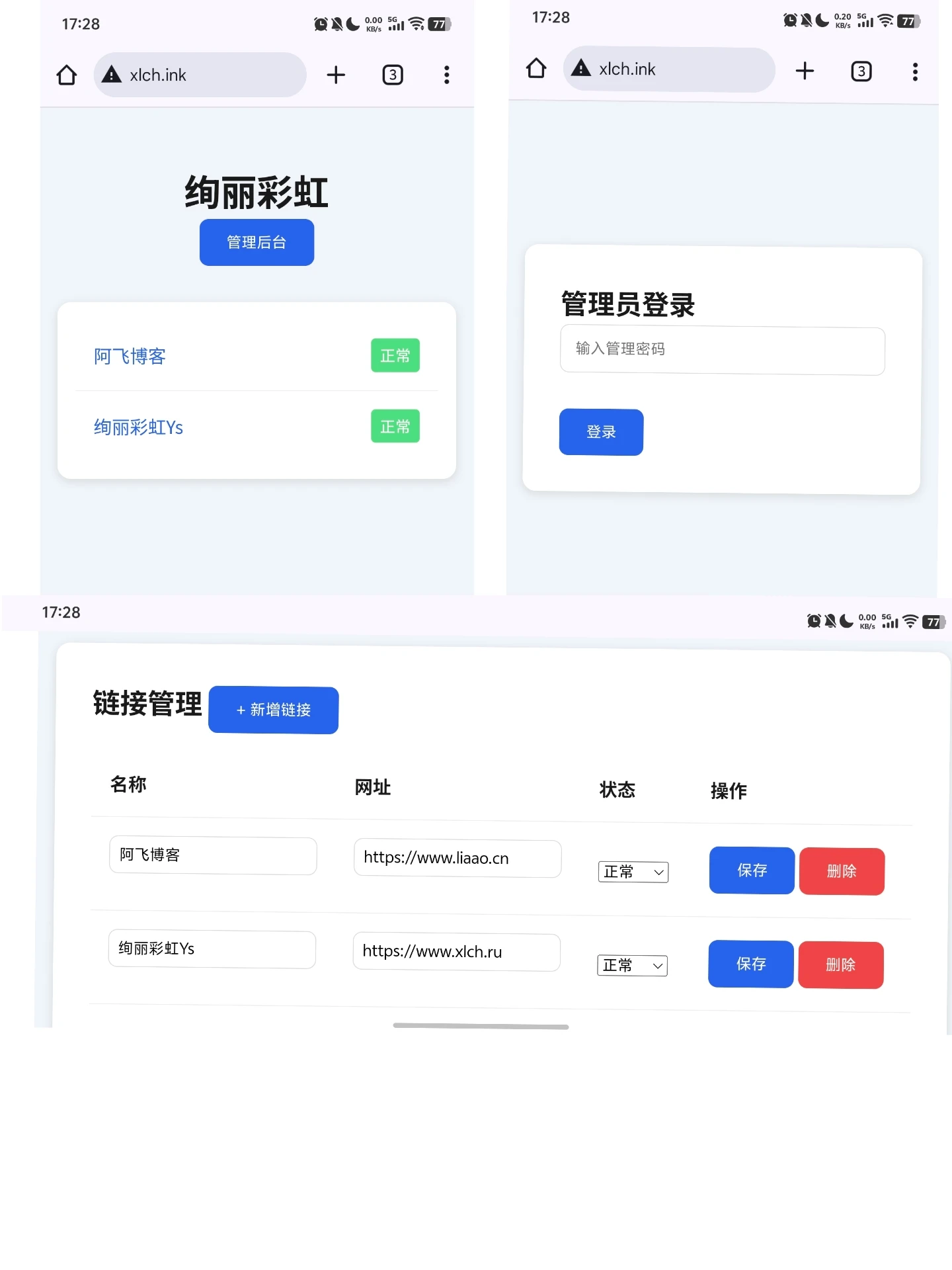 后台自定义添加链接,可选站点可否访问,并带有自动检测