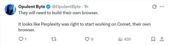 他们需要打造自己的浏览器。看来 Perplexity 公司着手开发自家浏览器 Comet 的决定是对的。