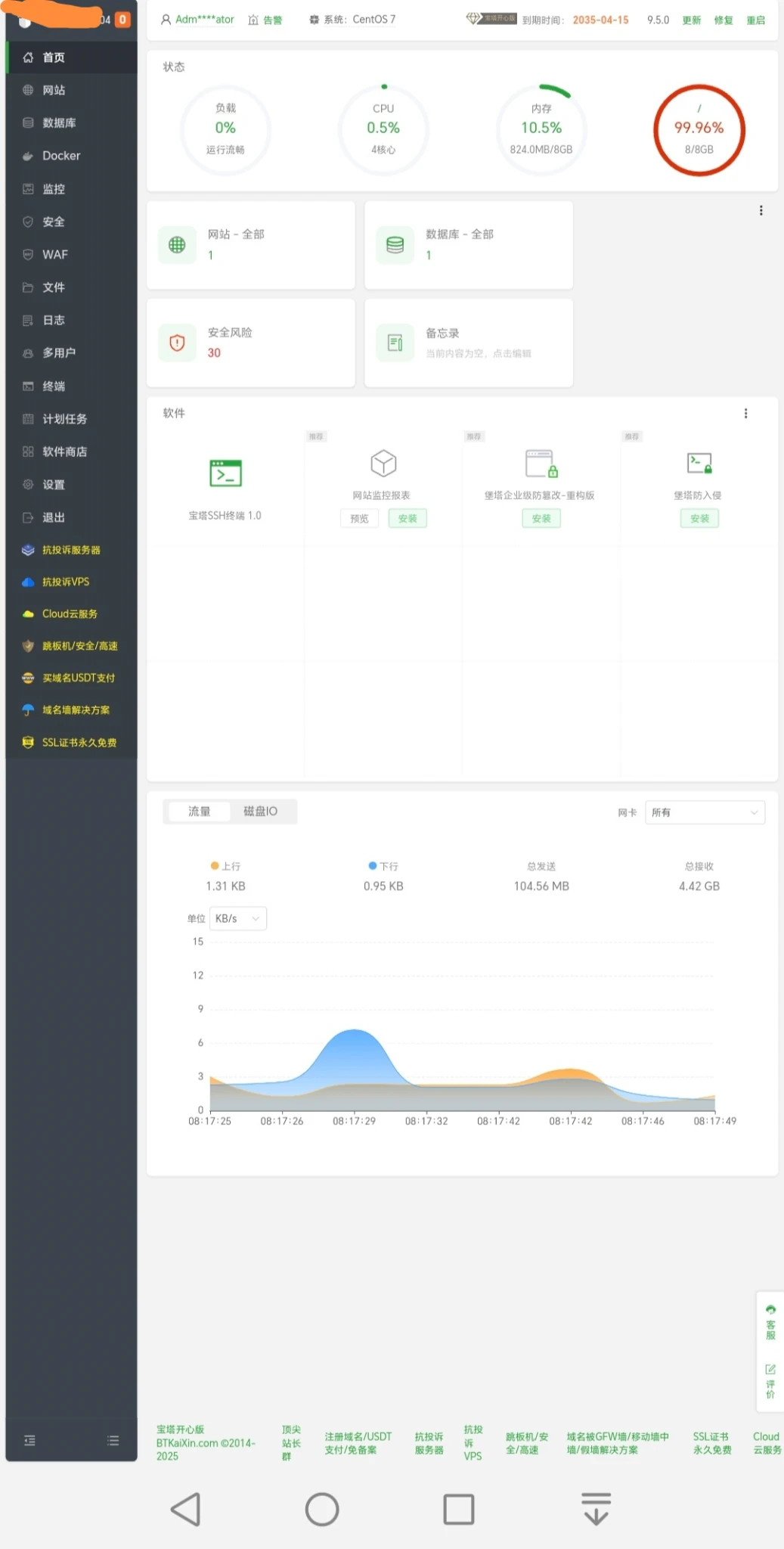 哈哈,我80G的破碎云的服务器,居然安了这个开心版后,变成了8G。而且左边还嵌入了自己的广告链接。