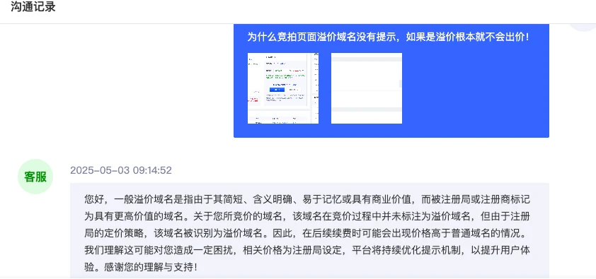 在Gname花275美元拍了个米,成功后发现溢价续费,每年都要270美元左右。事后想想,拍卖的时候从几美元直接飙到274美元,然后停留了很久,我加了一美元之后就没人出价了,猜测那274是Gname自己出的续费一年的价格。现在准备收集证据去投诉了。