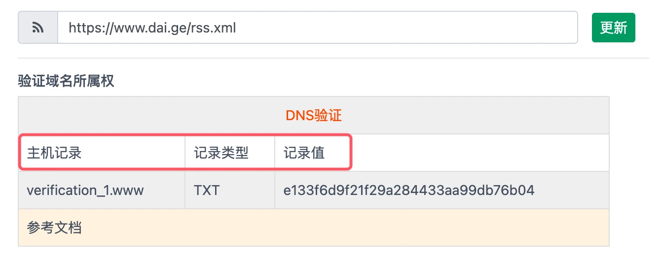 在验证完成前请不要点击页面RSS更新按钮,否则记录值会刷新修改,DNS解析验证偶尔会出现验证失败的情况,您可以等待一阵后再试。