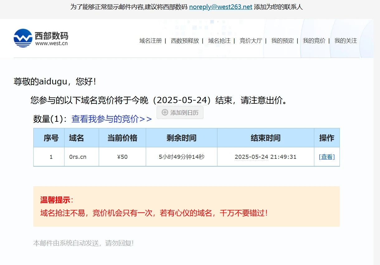 前两天在西部拍了个域名,没想到中了,现在域名越来越不值钱了,感觉是故意放出来的。