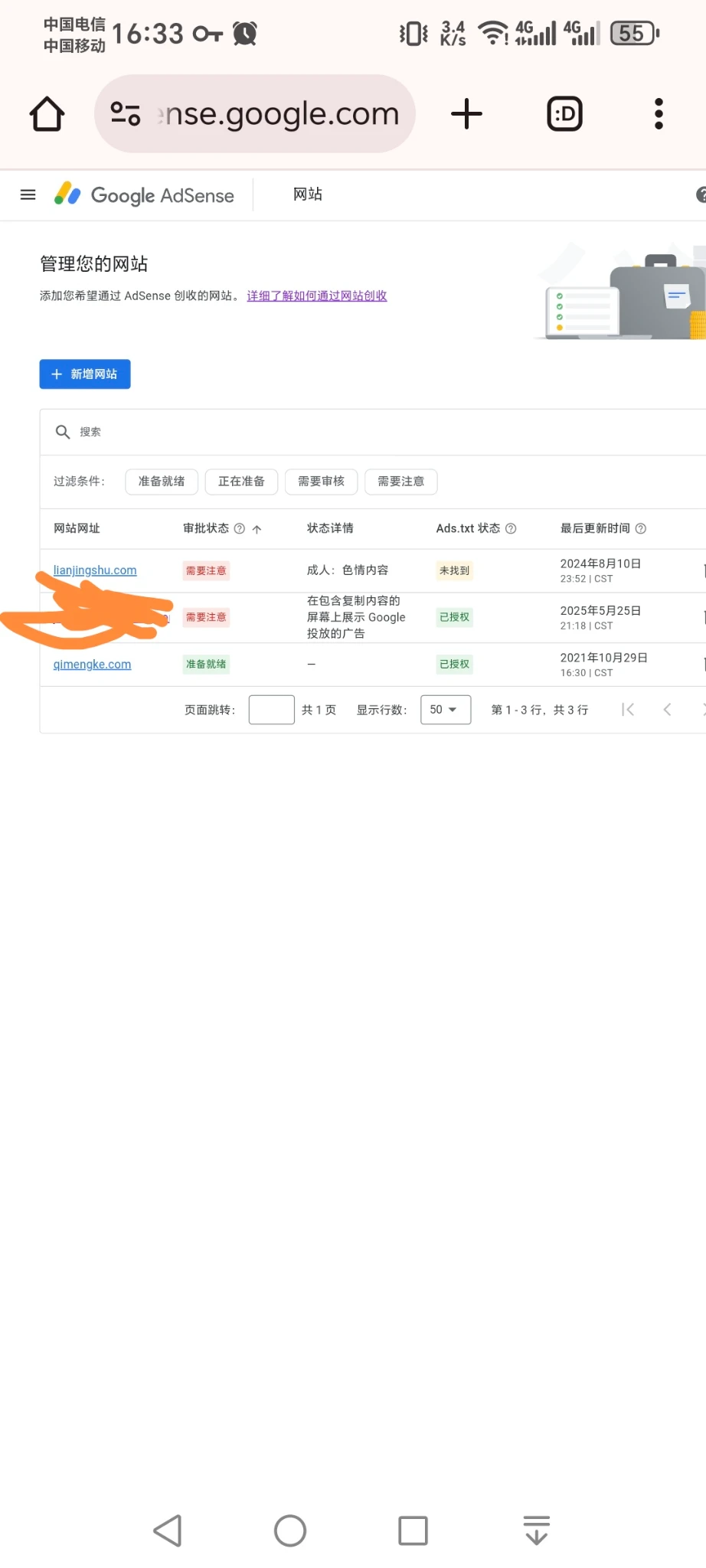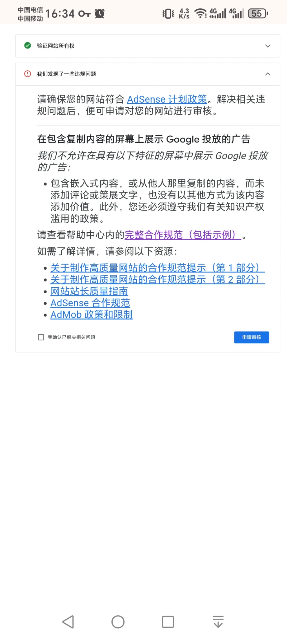 这几个月提交了另外一个流量比较大的网站,第一次说涉及色情没通过,后面提交了两次次没通过,理由都是说我的网站复制过来的。其实这个网站确实是复制过来的,但是都是整理了网上很多网站的内容整合的。