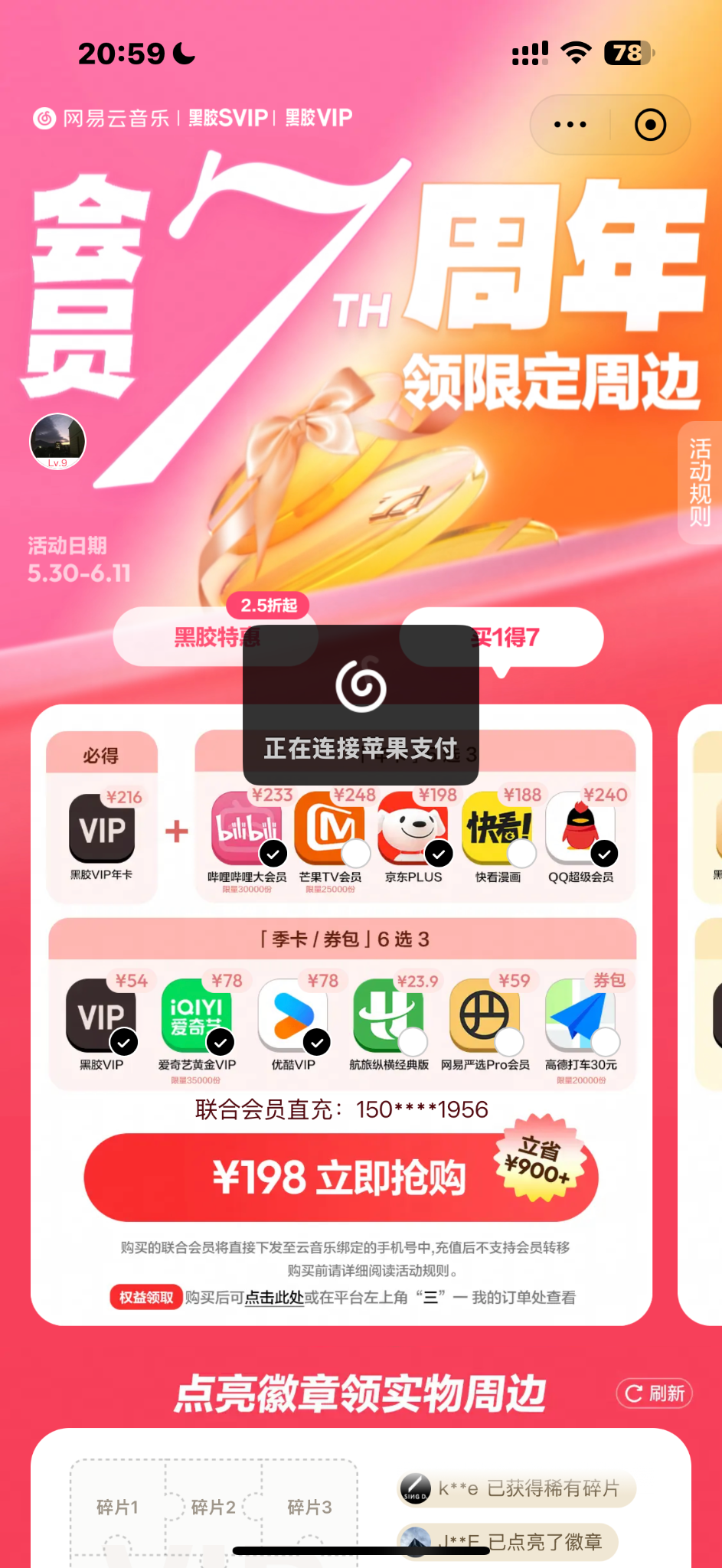 198拥有四个年卡vip,一个是网易云黑胶vip,另外是6选三,我选了jd plus ,哔哩哔哩会员,QQ超级会员,然后还送了四张季卡,总之肯定是值得的