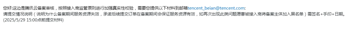 然而其实驳回的前一天腾讯云就给我打了电话让我在下午三点前发送