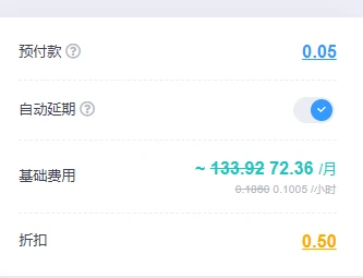 弹性的 72元价格是4h8g 可调低