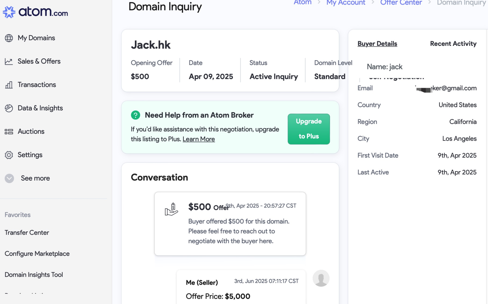 刚才登录atom平台看了下之前买家报价信息,竟然显示了这个买家的name 是jack 还有gmail邮箱,方便我直接发邮件沟通!