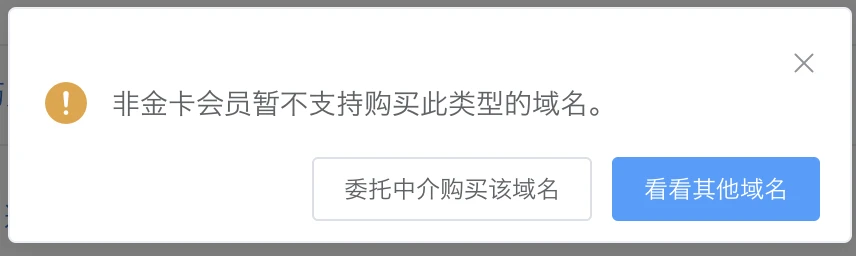 西部数据好大的牛逼 非金卡会员暂不支持购买此类型的域名