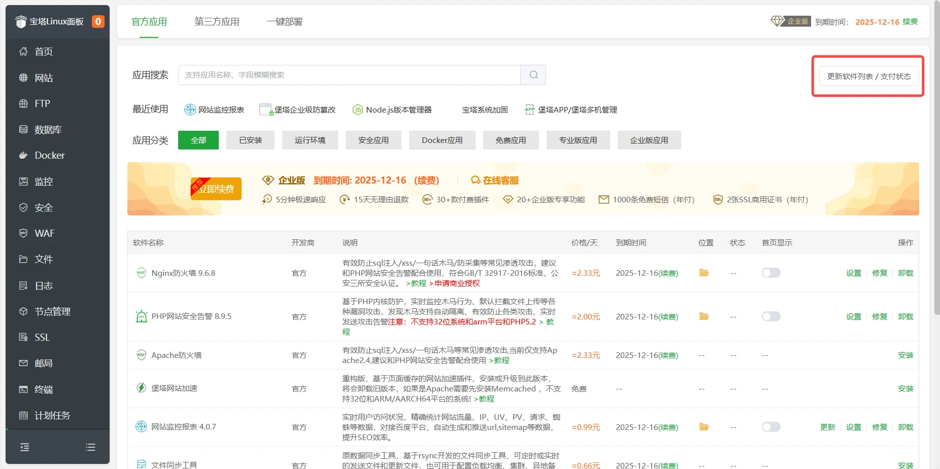 宝塔app已支持免费使用,商店右上角更新软件列表即可,同时宝塔10.0已公测,