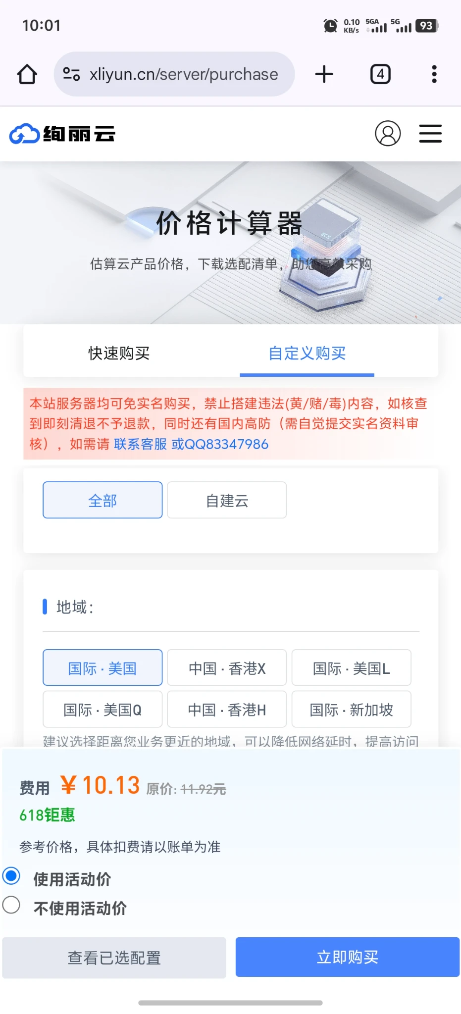 绚丽云618没啥大活动,只有做做10元出头的美国cn2鸡鸡,不限数量续费同价,全站云服务免实名!
