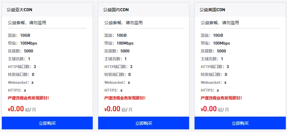 划重点👉 免费开通!点击对应「立即购买」,零成本体验 CDN 加速,不过不要滥用