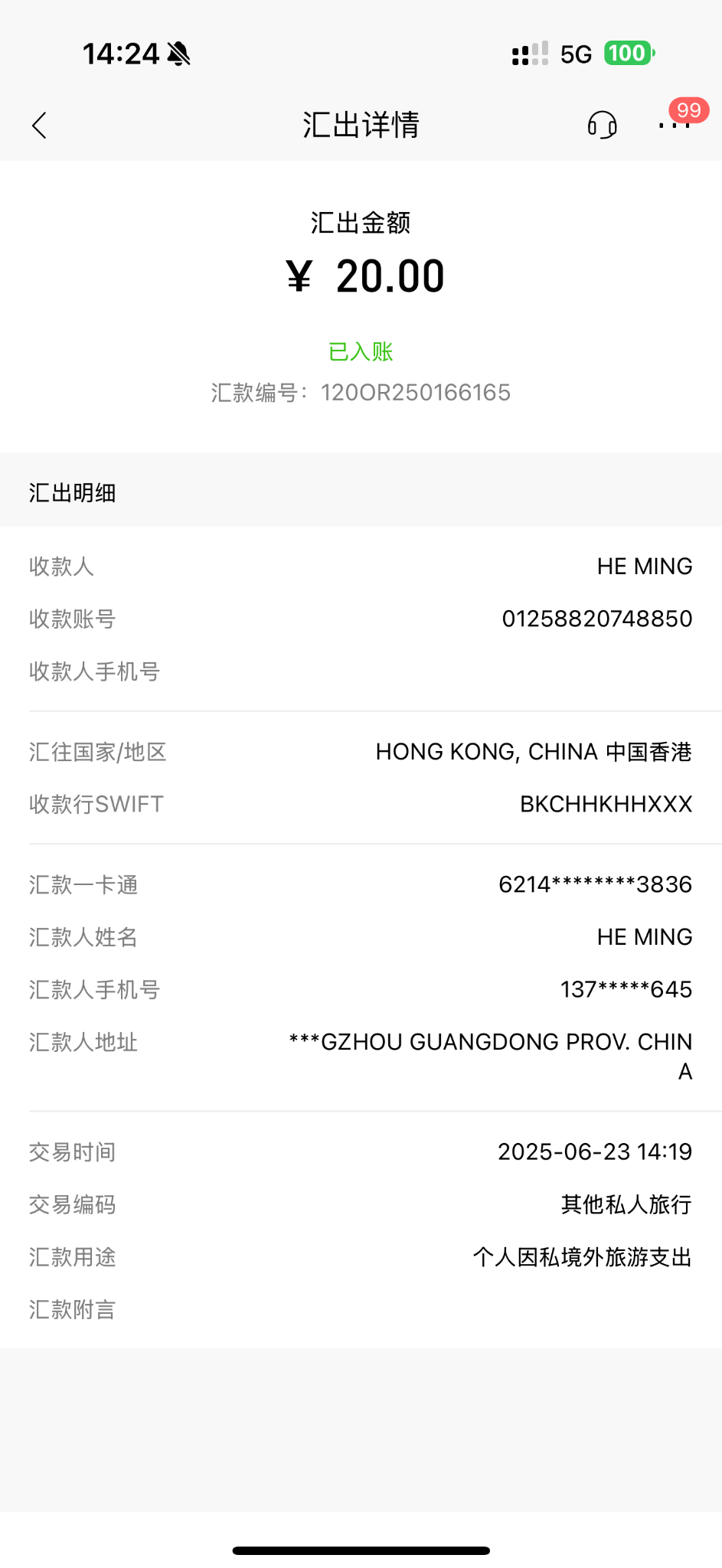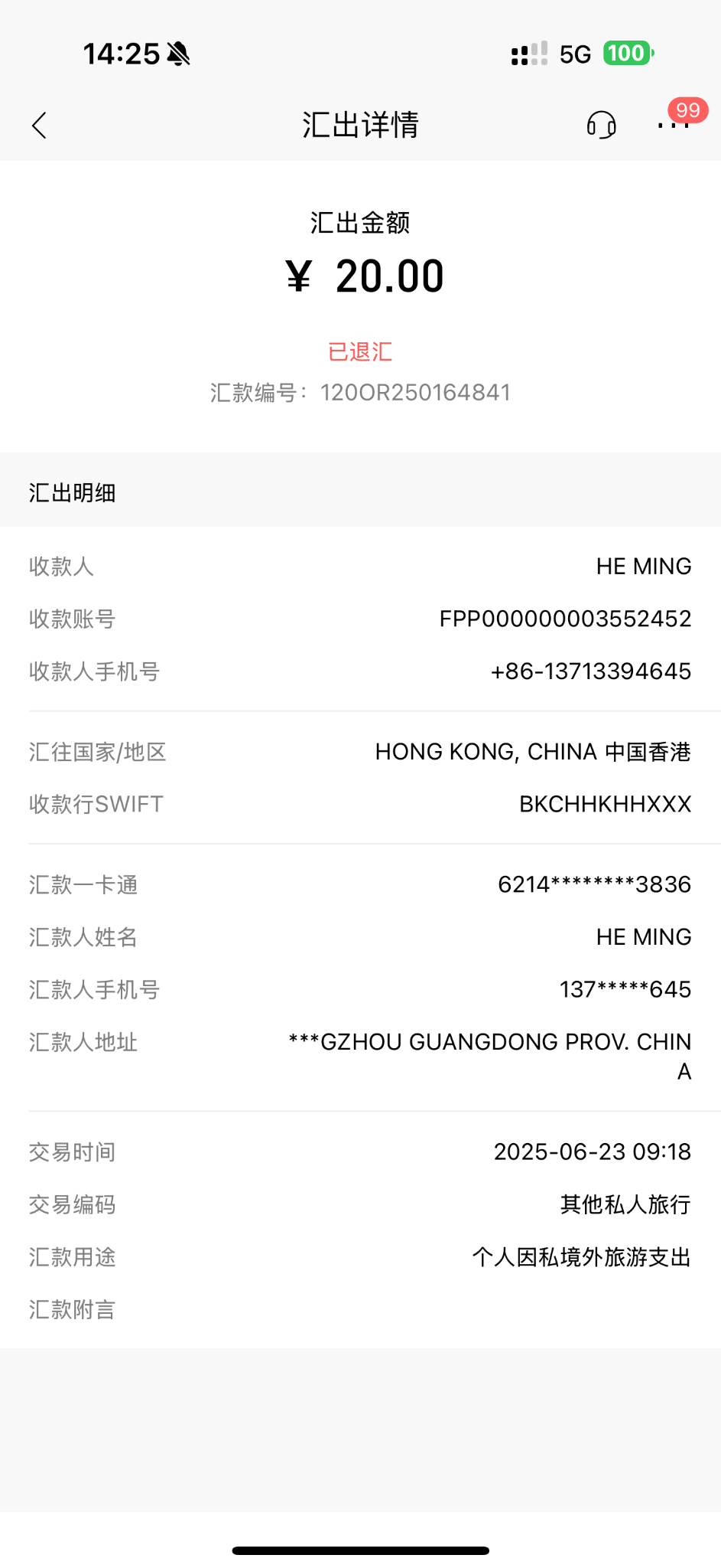 刚刚测试,跨境支付通,通过转数快手机号和邮箱转账到中银香港都失败,被退汇,但通过中银香港银行账号转账就成功了,估计是新上线有系统问题