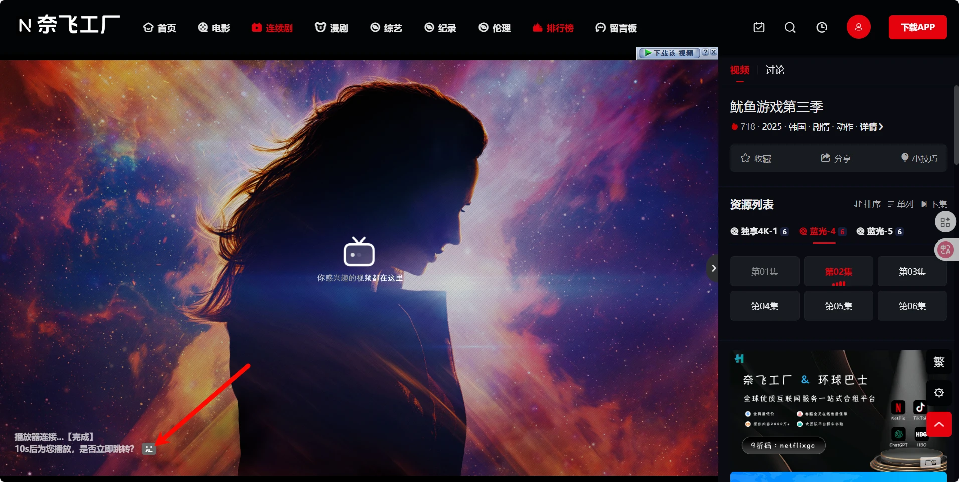 所有资源点击即播,没有广告,就是加载完成后会有个10秒倒计时,可以手动跳过。
