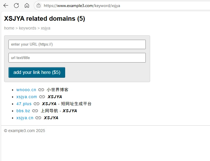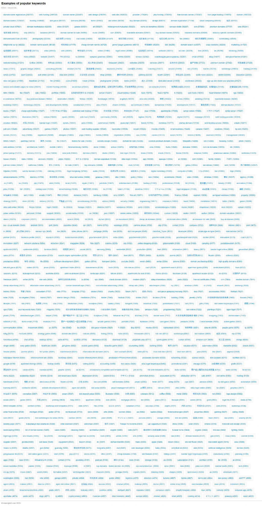 Popular website keywords at example3.com