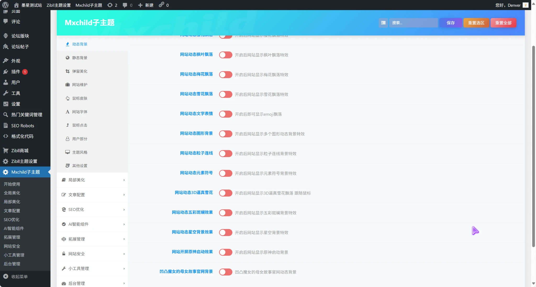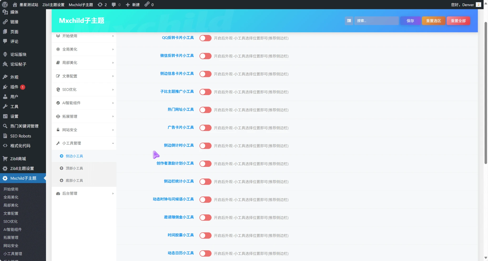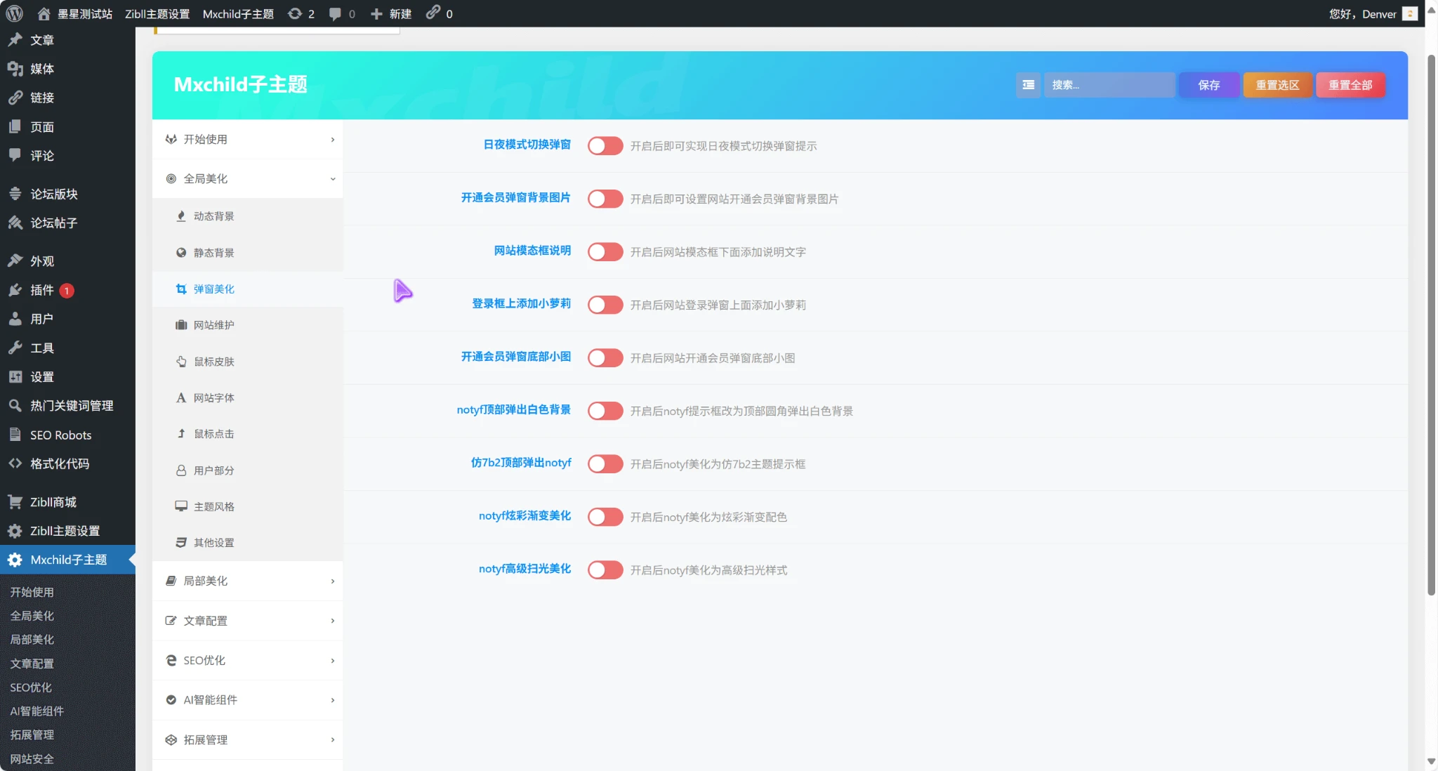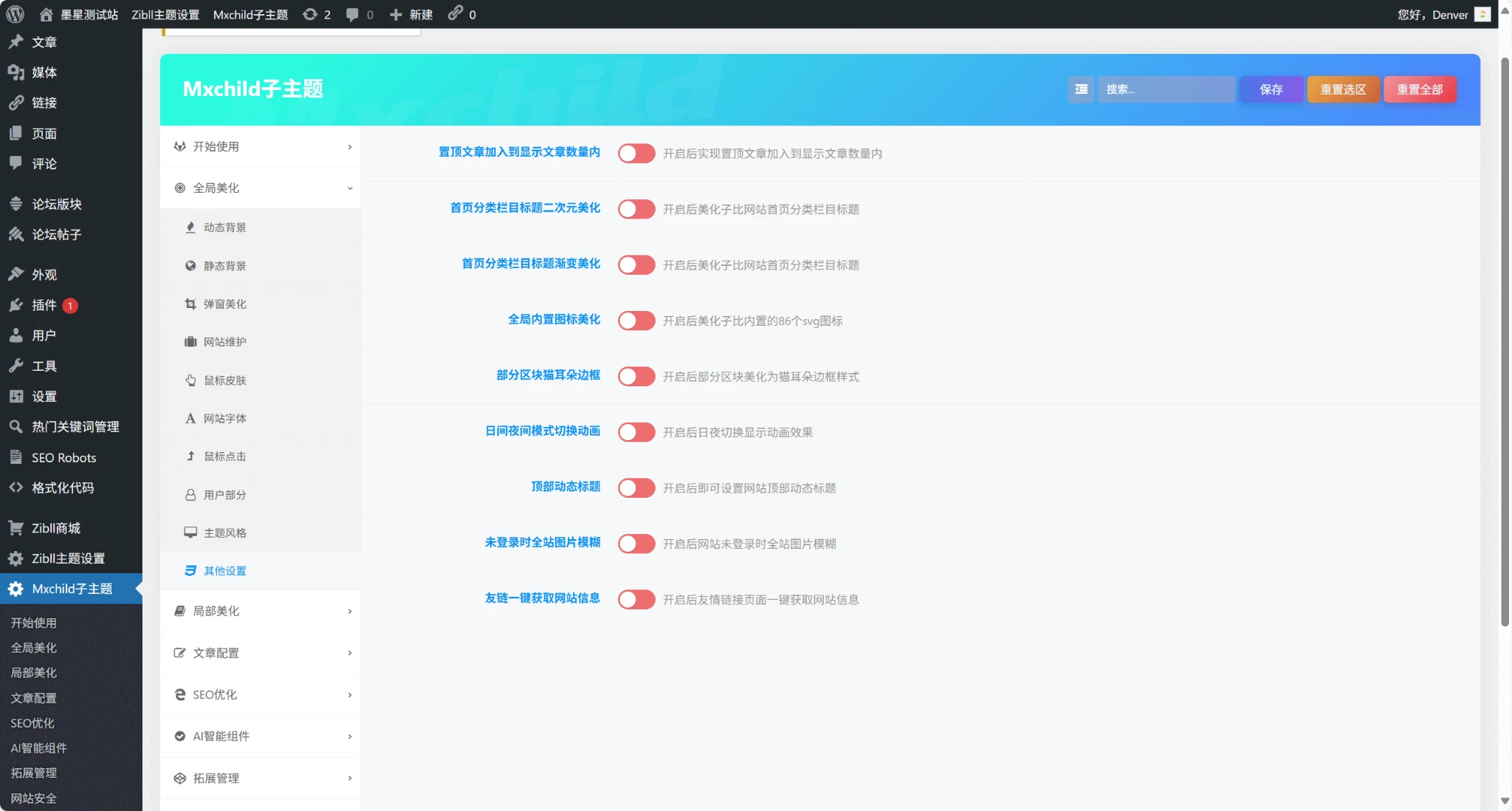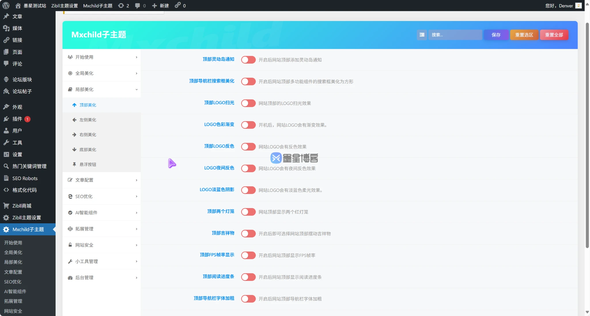Mxchild子主题适用于WordPress子比主题(父主题)的一款功能美化集成的子主题 包含300左右功能