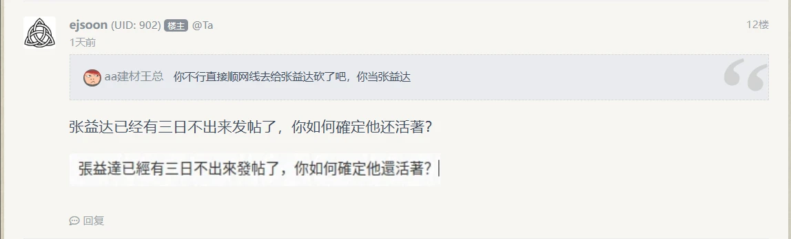 2024-2-19 发帖后 疑似死亡,又在 5月前 忽然诈尸,然后从9天前开始一直保持活跃,请问你什么时候沉默的再次死去呢?