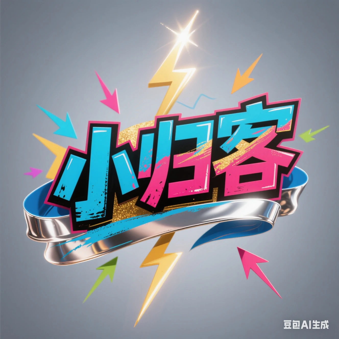 用中文“小归客”,生成带有拖墨效果,漂带效果,波普艺术风格的logo