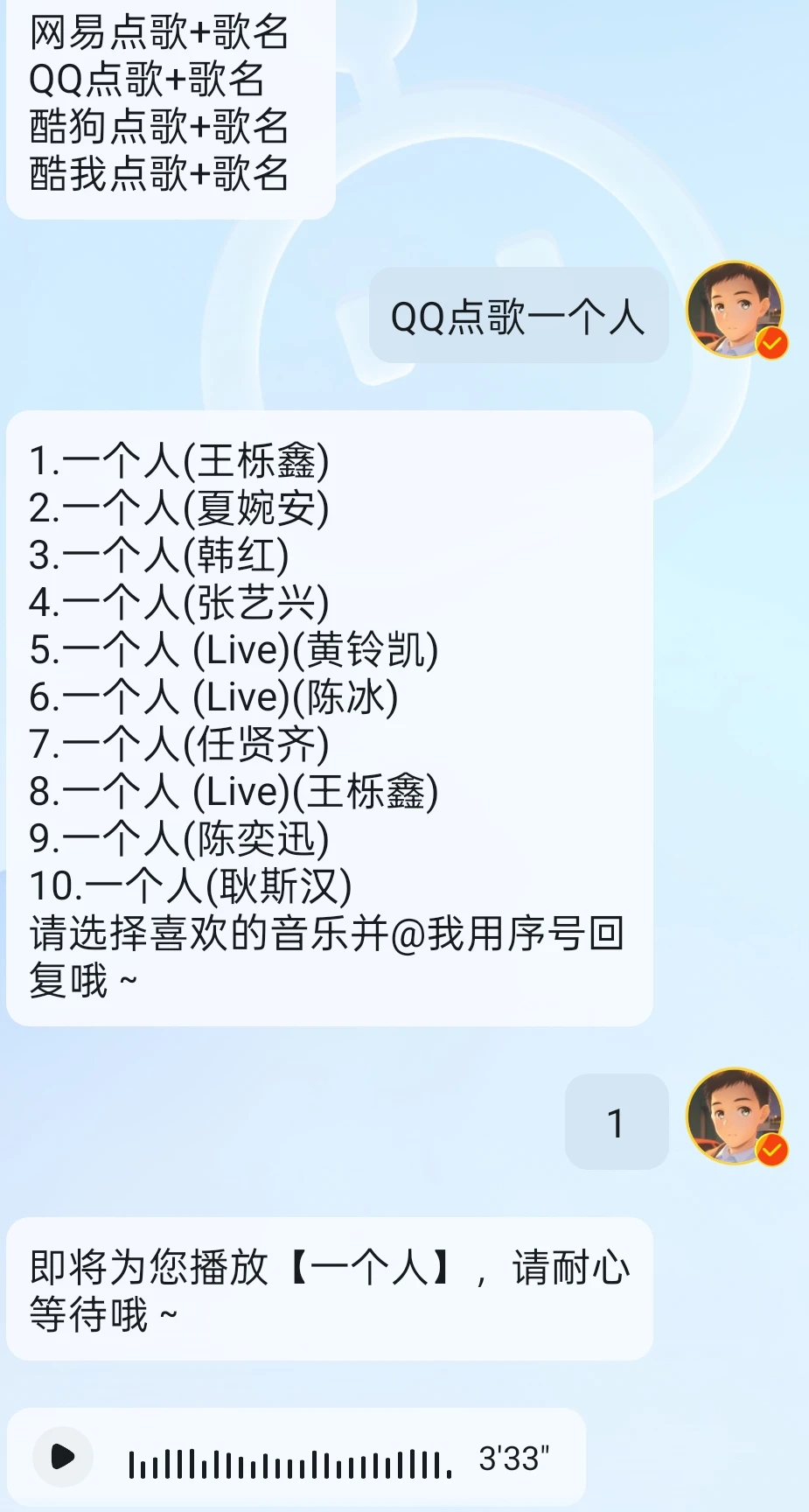 点歌名,提交搜索接口,取反解析,记录每个序号对应的ID。客户选择