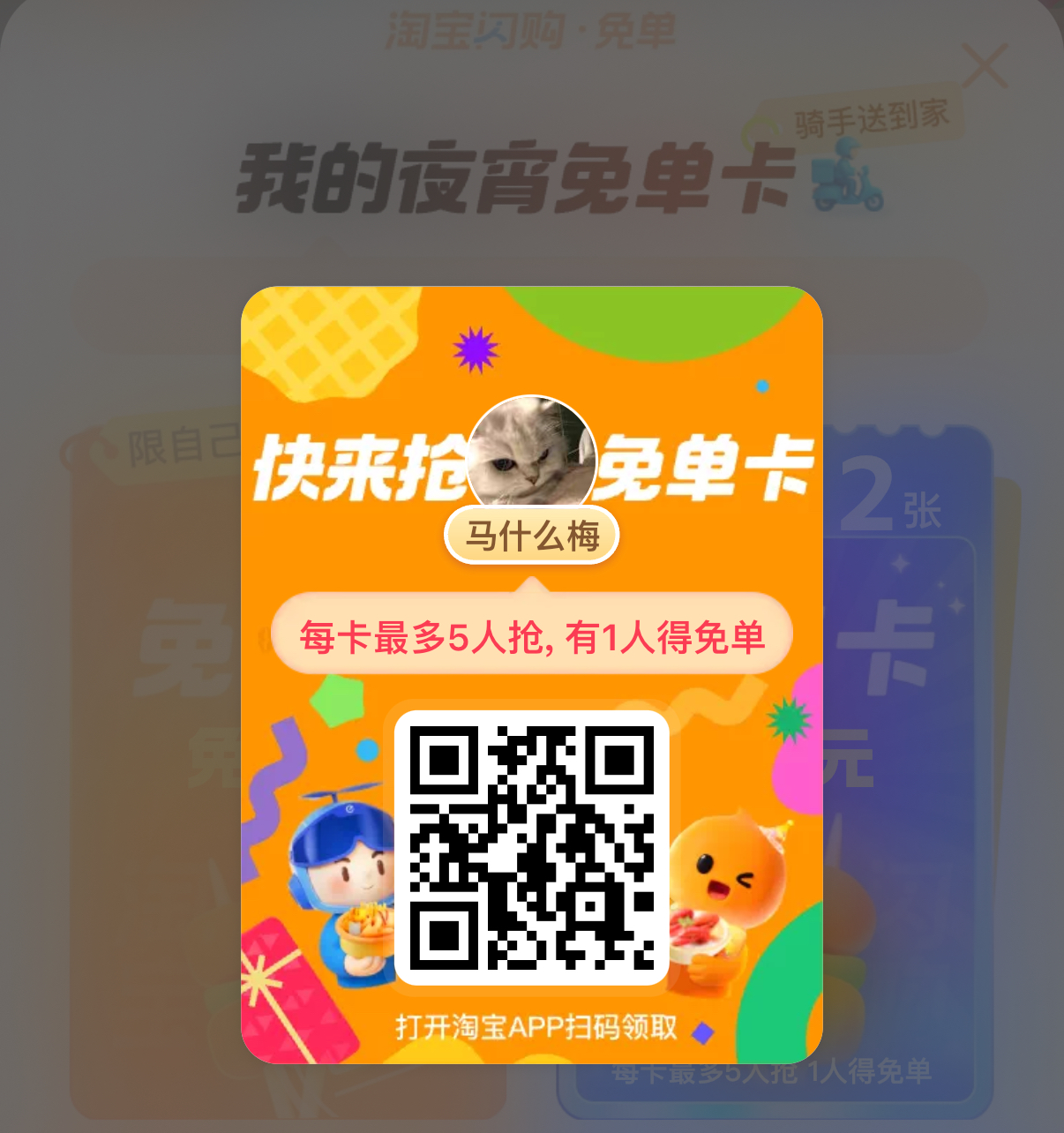 快来抢夜宵免单卡,请通过以下任一方式抢免单①去淘宝App搜索提取码:7355Y0②点击链接领取https://m.tb.cn/h.hRaK8Xu?tk=oNXq41lY3KN ③完整复制这条信息,打开淘宝App自动识别