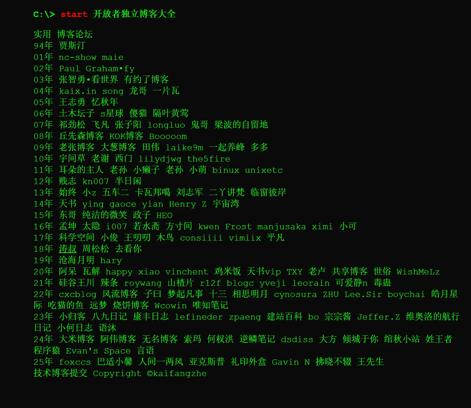 开放者独立博客大全,欢迎报错!