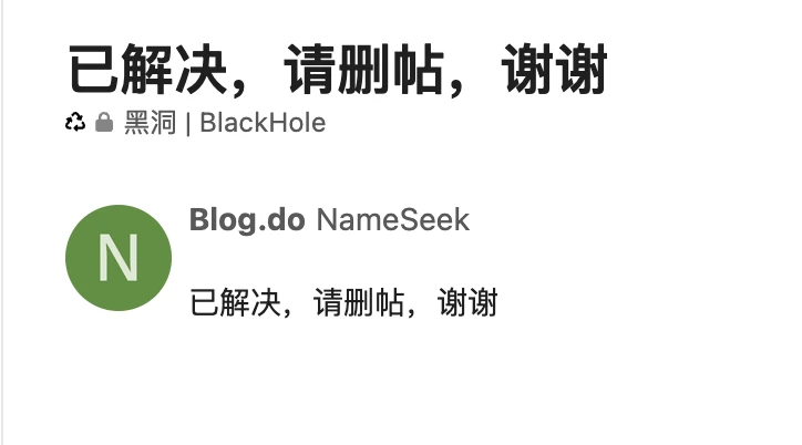本帖发布后,当事人在nodeloc修改帖子,并表示“已解决,请删帖,谢谢”